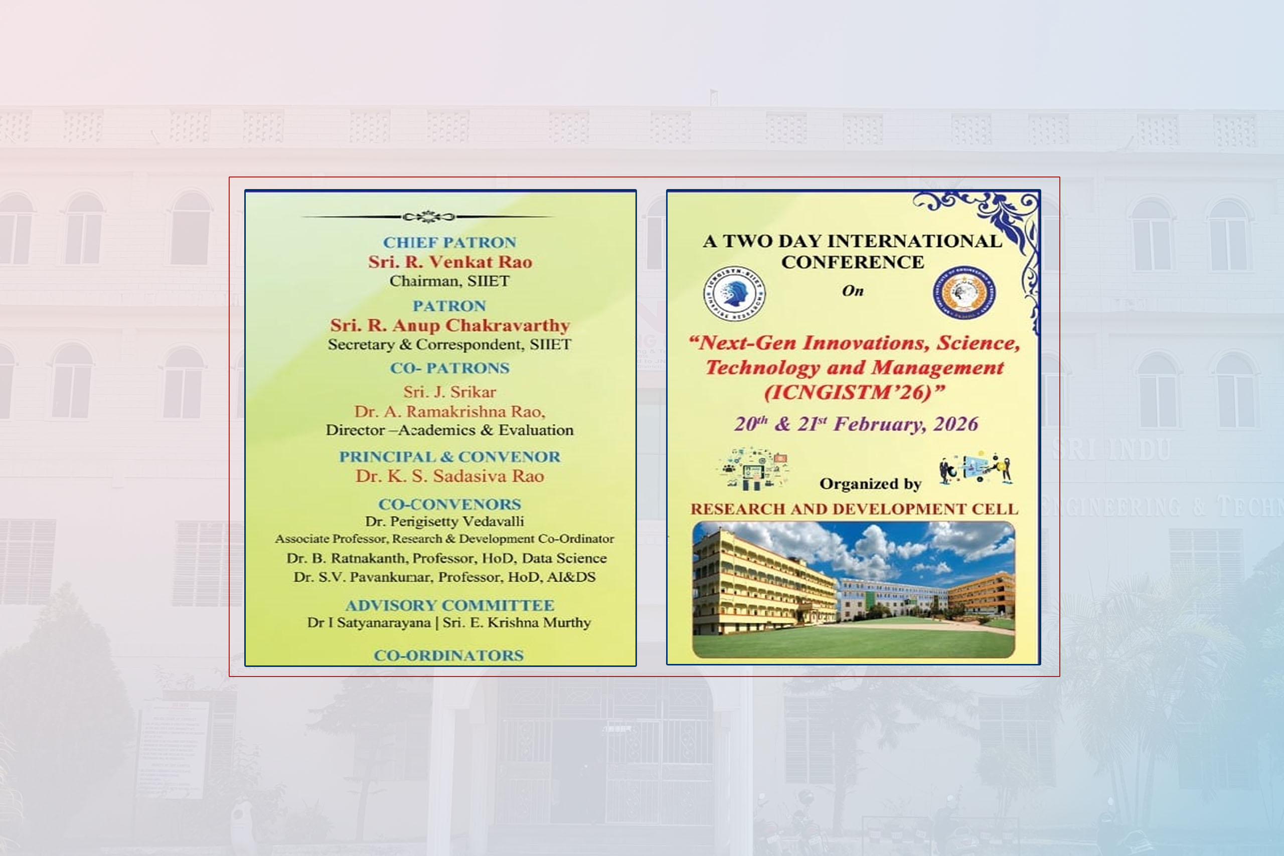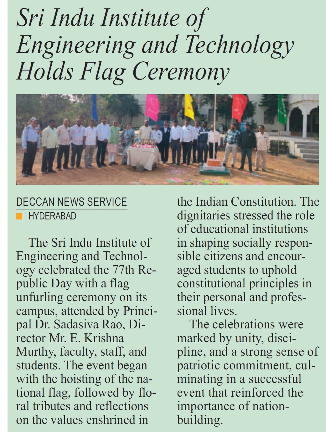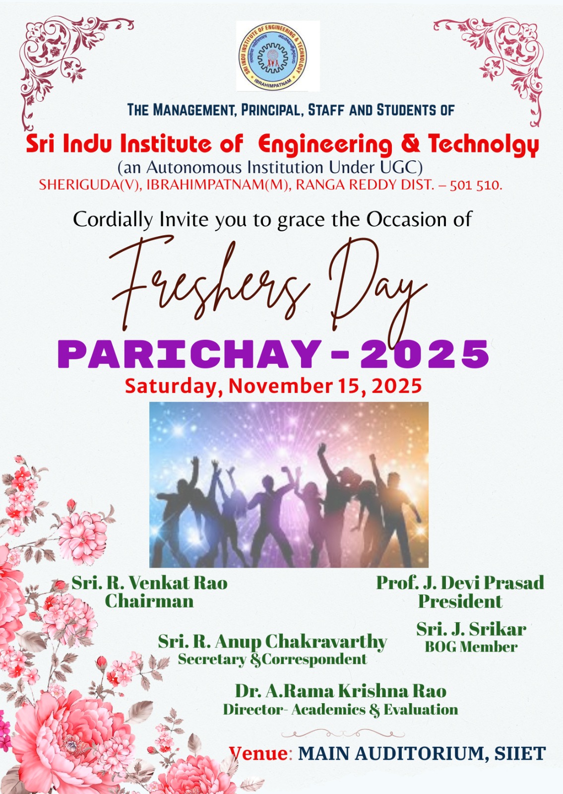 As the chairman of the Institution, I would like to take you through a journey touching upon few of the milestones in the past years. Sri Indu Institute of Engineering & Technology is an Autonomous Institution under UGC Presently under New Loyola Model Education Society-2006,Vanasthalipuram, Hyderabad. Sri Indu Group of Institutions was established in 2001 by New Loyola Model Education Society - 1979. The Society is having proven rich experience in the field of education for more than 46 years, with an intention and commitment to impart School and Technical education of highest quality.